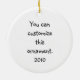 Lightweight, smooth, pure white ornament with nice sheen. Perfect size to be seen from across the room ... and to attract closer inspection! Price was great for ordering enough for the whole family! Clear, bold black design just as requested. Matches the order exactly. Just so nice!