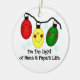 A set of three holiday lights on a string with eyes and smiles and text that reads "I'm the light of Nana and Papa's Life" on customizable keepsake ornaments.