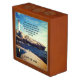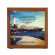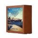 A picturesque lighthouse scene is the backdrop of the verse John 8:12-'Jesus said, I am the Light of the World'. The opposite side shows an illustration of a white bird with outstretched wings above a sketched scene with 'AMERICA-Rise and Shine' below it. Great desk gift for any Christian.