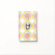 light switch cover plate inspired by Mediterranean floral patterns, created in 1993 for a tabletop china pattern design, these blooking floral medallions are centered within each other - art by Kristie Hubler, pattern called "Light Passion", for a plate - colors pink, blue, cream, yellow, gold