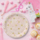 Light Pink and gold Mermaid scales party plates are perfect for any mermaid or under-the-sea-themed party. Throw a spectacular party with fully customizable paper plates to match your theme! Each set of eight paper plates is printed on durable paper stock and decorated with your custom designs or photos. These plates are perfect for serving cake, appetizers, or salads. © Julie McIver