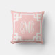 Light Pink and White Greek Key Script Monogram Throw Pillow