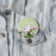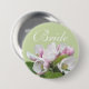Light pink apple flower, green leaves bride wedding button. Floral photo art.