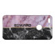 Modern image of black and light pink faux marble print geometric design gold accent. Customizable monogram.