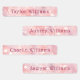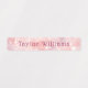 Name labels featuring your name in maroon on a light pink, soft-focused background with glistening light bokeh.