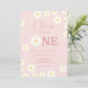 Light Pink Retro Daisy Floral 1st Birthday Party Invitation
