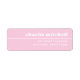 Return address labels with your name in a retro style font and a thin border between your name and return address. The is text aligned to the right, white text on a light pink background.