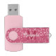 Light pink rose faux sparkles glitter Monogram Flash Drive