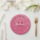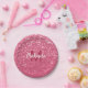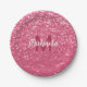 Light pink rose faux sparkles glitter Monogram Paper Plates
