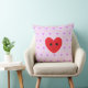 Modern light pink and violet heart pattern on light violet background Throw Pillow. A big red happy heart is only on the front side. The red heart image can be customized.