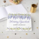 Beautiful light purple wisteria flowers create the top border on this floral wedding guest book. A wisteria vine and a few buds create the bottom border. Wedding Guestbook is written in a beautiful purple script. Your names are below.