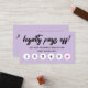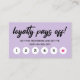 Light purple loyalty punch card for six visits with loyalty pays off in a modern brush script and a hot pink star marking the sixth visit. Light purple loyalty punch card personalized with your logo on the back along with contact info and business name. Charming loyalty punch card in purple for a makeup artist, nail artist, beautician, hair stylist, and more.