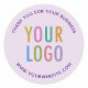 Personalize our round business thank you stickers with your company logo and custom text. These are professional scratch resistant stickers printed on acid-free paper. You can customize the words "Thank You for Your Business" to your own message in your preferred language. Available in a glossy or matte finish as 3 inch or 1.5 inch stickers. Designed in light purple and other colors (all colors are customizable). Low minimum order quantity and no setup fee.