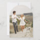 This boho wedding Save the Date card features a gold-colored beaded arch frame and a full photo on the back. Personalize the custom text above. Matching items available.