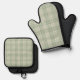 Light sage green plaid oven mitt & pot holder set