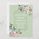 Pretty light sage green wedding invitation, with white polka dots and bouquets of flowers, surrounding the text area. Personalize the white text to suit your wedding needs. Matching products are available.