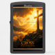 This powerful and majestic design captures the theme of the Light of Salvation—the divine hope and guidance offered through Christ. The artwork, featured on a lighter, displays a massive, rugged stone cross standing monumentally on a mountain summit. The cross is silhouetted against an intense golden-orange glow and dramatic sunrays that illuminate the mountainous landscape below, symbolizing the light conquering darkness and ignorance. The gold words "THE CROSS" are prominently featured near the base of the design. The core message of Christian faith is quoted from John 8:12: "I am the light of the world." This incredible image provides a spectacular visual representation of faith, serving as an inspiring lighter and striking centerpiece for any faithful home or office, symbolizing eternal guidance and hope.