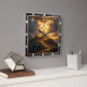 This powerful and evocative design captures the theme of the Light of Salvation—the divine path and guidance offered through Christ. The artwork, featured on a square wall clock, displays a brilliant, glowing golden cross standing monumentally atop a rugged mountain summit. A clear stone pathway or stairway ascends the mountain directly toward the cross, symbolizing the journey of faith. The cross is bathed in intense light and dramatic sunrays that pierce the surrounding clouds, representing the light of the world. The core message of Christian faith is quoted from John 8:12: "I am the light of the world". This incredible image provides a spectacular visual representation of faith, serving as an inspiring timepiece and striking centerpiece for any faithful home or office, symbolizing hope and eternal direction.