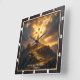 This powerful and evocative design captures the theme of the Light of Salvation—the divine path and guidance offered through Christ. The artwork, featured on a square wall clock, displays a brilliant, glowing golden cross standing monumentally atop a rugged mountain summit. A clear stone pathway or stairway ascends the mountain directly toward the cross, symbolizing the journey of faith. The cross is bathed in intense light and dramatic sunrays that pierce the surrounding clouds, representing the light of the world. The core message of Christian faith is quoted from John 8:12: "I am the light of the world." This incredible image provides a spectacular visual representation of faith, serving as an inspiring timepiece and striking centerpiece for any faithful home or office, symbolizing hope and eternal direction.