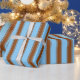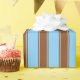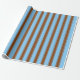 This wrapping paper design features a light sky blue and brown colored striped pattern. Wrapping paper like this might be fun to use when wrapping gifts or presents being given in celebration of a birthday, a wedding, an anniversary, or some other event.