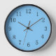 Light Sky Blue color electric wall clock, with your choice of black, white or natural frame, will lift the spirits whether you hang it in your kitchen, den, study or even your garage. Choose hands to match or contrast with frame. Bright and cheerful, high-quality, yet cheap, this sky-colored color clock is lowpriced enough to fit even a student's budget, making it an ideal present for a student heading off to college.
