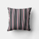 This throw pillow design features a pattern of stripes having colors like light slate gray, light pink, dark slate gray, and black.