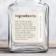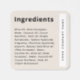Ingredient list product label in a modern, minimalist style with your company name rotated on the side inside a white box on a light tan brown background.