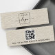 Mini earring product display card with QR code and custom logo template on a light tan PRINTED IMAGE of linen. The earring guides can be adjusted by adding and removing spaces in the template field, and by moving the whole element in the design tool.