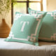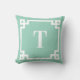 Light Teal and White Greek Key Border Monogram Throw Pillow
