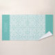 Light teal blue damask pattern, scalloped borders bath towel set