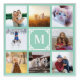 Eight photos in a modern minimalist grid design around a light teal and white Greek Key border motif monogram.