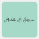 Light Teal Handwriting Creative Trendy Name Square Sticker