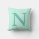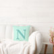 Light Teal Initial Letter Trendy Pastel Mint Blue Throw Pillow