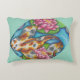 Looking for a pretty throw pillow for your sofa or bed? This koi fish print throw pillow features a beautiful orange spotted butterfly koi fish in koi pond with stones and pink lotus blossoms. Pillow features shades of orange , blue, brown , yellow , green , purple , pink , gray, and black. Various materials and available. Original colored pencil artwork by The Gifted Grackle on one side of pillow only.