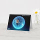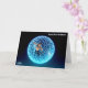 A 3D fractal science fiction image of a lone human male figure grasping the bars of the spherical glowing blue cage in which he is imprisoned. Stars shine in the dark sky. Add your own text.
