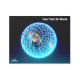 A 3D fractal science fiction image of a lone human male figure grasping the bars of the spherical glowing blue cage in which he is imprisoned. Stars shine in the dark sky. Add your own text.