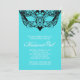 Masquerade ball invitations with a light blue background. Customizable to fit any type of event, including birthday parties, company parties, sweet 16 parties, and fundraisers.