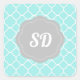 Light Turquoise Quatrefoil Custom Monogram Square Sticker