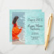 Celebrate your graduate with a light turquoise, square party invitation. Elegant script on front and orange lettering on back. Easily customize orange message on back to match your photo!