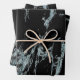Light Turquoise Vein Black Marble Look Wrapping Paper Sheets
