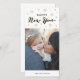 This fun New Year design features a black, white and gold color scheme with fireworks and star graphics lighting up the sky! A hand lettered calligraphy font flows across the design reading "Happy New Year" with space to include your photograph.