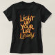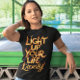 A fiery, hand-drawn typography piece with the phrase Light Up Your Life Literally in a bright orange flame design on a black background.