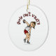 Lightweight, smooth, pure white ornament with nice sheen. Perfect size to be seen from across the room ... and to attract closer inspection! Price was great for ordering enough for the whole family! Clear, bold black design just as requested. Matches the order exactly. Just so nice!