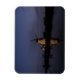 Rectangular souvenir photo magnet with illuminated historic windmills with reflection in the water of the river during the Blue Hour at the beginning of the night in Kinderdijk in the Netherlands.