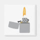 This beautifully detailed design shows a silver cigarette lighter with a large flame.
