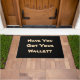 This fun doormat has a question printed in large letters to remind you to check that you've got your wallet or purse as you leave the home "Have You Got Your Wallet?" is the question you'll see as you go to open your door. Th gentle reminder will jog your memory to double check your bag or pockets for your wallet before you leave your home, it's also a quirky and fun doormat to have in your home. This is a customizable doormat, you can choose the color and personalize it with your own text if you wish to.