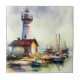 Lighthouse and boats Watercolor Art Ceramic Tile