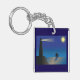 Lighthouse and Sailboat at Night Moonlit Ocean Keychain