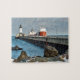 A photo of a light house and the John G. Munson on lake Superior in Duluth Minnesota.