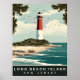 Long Beach Island, New Jersey, lighthouse on the coast, travel poster.